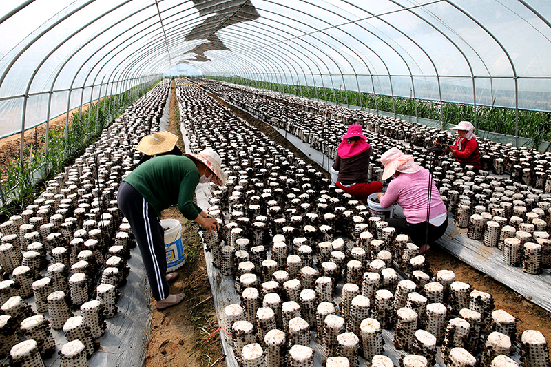 集團副書記張明到東南田崗村調研指導食用菌木耳采收工作