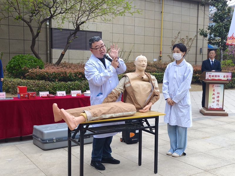 活動(dòng)伊始,華澤消防維保單位人員進(jìn)行消防器械介紹、日常火情滅火講解及火情發(fā)展趨勢(shì)及自我保護(hù)講解,滕州市財(cái)貿(mào)醫(yī)院醫(yī)護(hù)人員進(jìn)行了急救知識(shí)講解,消防大隊(duì)的專業(yè)人員進(jìn)行了滅火救援裝備器械操作演示及講解,讓大家更加直觀地了解消防安全知識(shí)和緊急救援知識(shí)。